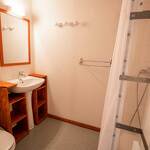 Salle de douche : douche, lavabo et wc