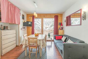 Appartement 2 pièces + cabine de 33 m2 pour 4 personnes, situé au 1er étage d’une petite résidence. Grand balcon (avec mobilier de jardin).