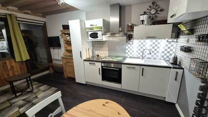 - Cuisine rénovée et bien equipée avec 4 plaques chauffantes, réfrigérateur, lave vaisselle, four et micro-ondes.